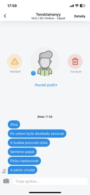 @anonym_392cea Boha to sú iní zúfalci 😂 to na akej zoznamke? Lebo mám pocit, že väčšine takto drbe z fejkových sex zoznamiek 🫣 tam sa takto komunikuje a oni si potom asi myslia, že si ženy takto bežne píšu s chlapmi.