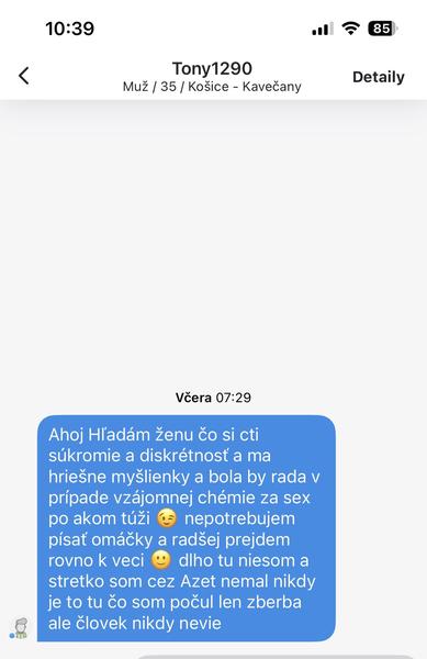 @anonym_383e0a ibaže mňa muži nezaujímajú. Píšem tam o tom hnuse, ktorý na zoznamkách zostal, alebo sa tam postupne dostáva. Veď sama vidíš tú žensku, čo sem pridáva prefotené obrazovky, čo je to za mozog si fotiť obrazovky? Na zoznamkách jednoducho vzniká určitá "ženská stoka", kde končia tie, o ktoré už nikto nemá záujem.