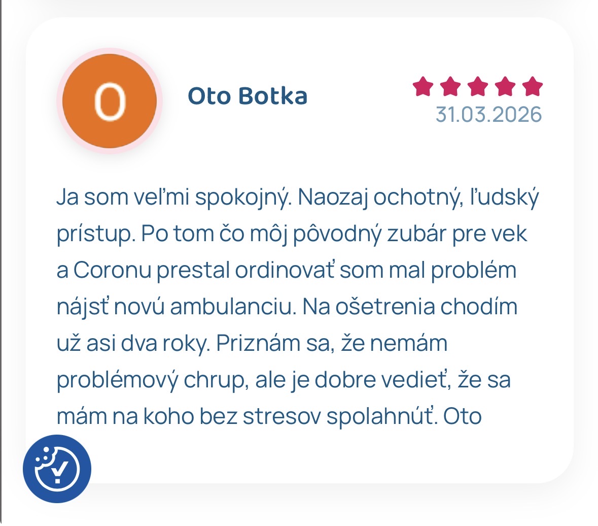 Nie každý píše hodnotenie, ja som lekárovi či zubárovi hodnotenie nenapísala nikdy, či pozitívne, či negatívne, takže tvoje výpočty, že by ich malo byť 48 denne sú úplne mimo, málokto venuje čas recenziám... taktiež nemajú dôvod zverejňovať na svojej stránke nejaký tvoj názor na chlórhexidín a je tiež bežné, že si tam každý uvedie tie najlepšie... ak si chceš pozrieť všetky, ktorých je vyše 1000 s hodnotením 4,9/5, vieš si ich rozkliknúť priamo v google rewievs a tam s nimi manipulovať nevedia..