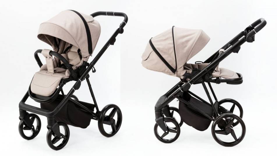 • Kombinovaný kočík s vaničkou – konštrukciu, nákupný košík, kolesá, športové sedadlo, nánožník, moskytiéru, pláštenku, prebaľovaciu tašku, držiak na nápoj a hlbokú vaničku.