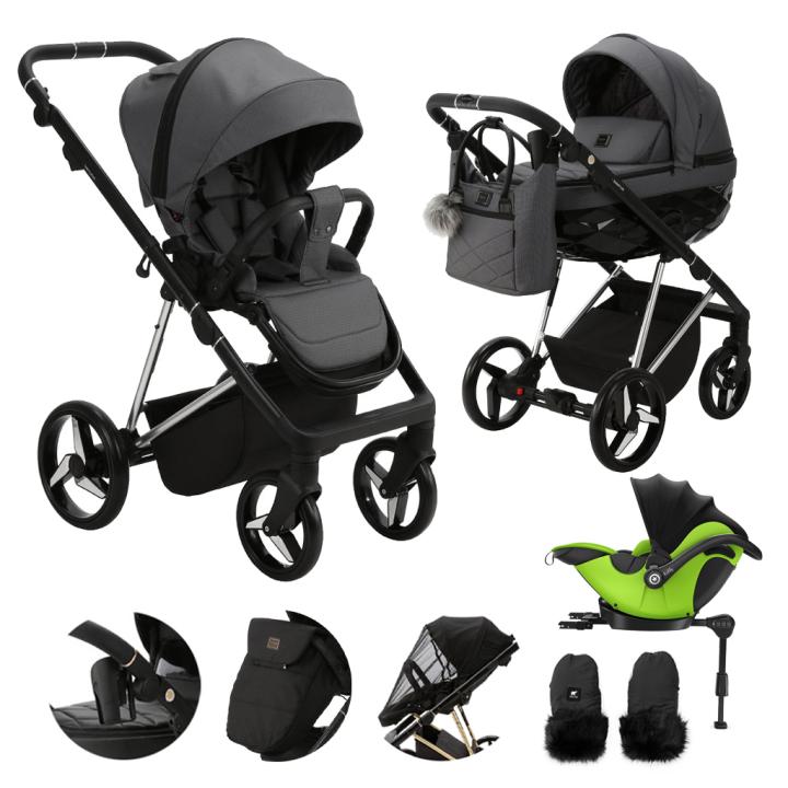 - Súčasťou kočíka je bohaté základné príslušenstvo, ako sú nánožník, moskytiéra, prebaľovacia taška, rukavice, pláštenka a držiak na nápoj.