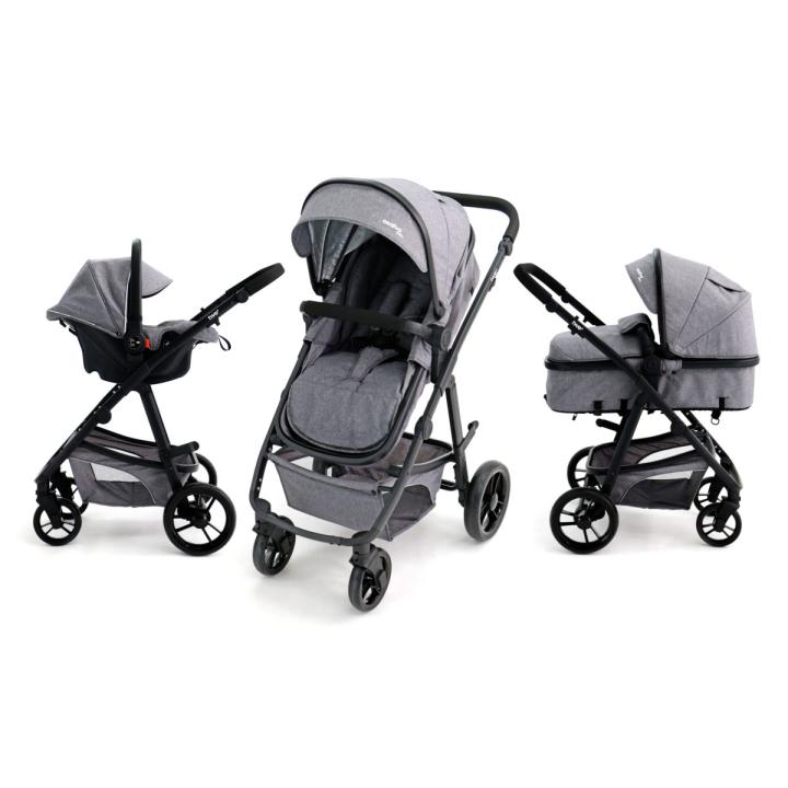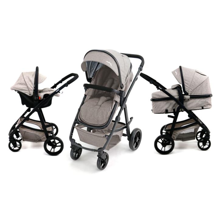 V konfigurácii hlbokej vaničky ponúka dostatok priestoru a možnosť naklopenia chrbátika, a v sedadlovej verzii korýtkového typu môžeš dieťatko nakloniť z ľahu až do sedu za pomoci bočných tlačidiel, ako aj pásového mechanizmu. V trojkombinačnom sete je dodávaná zladená autosedačka, a tiež sediaci nánožník.