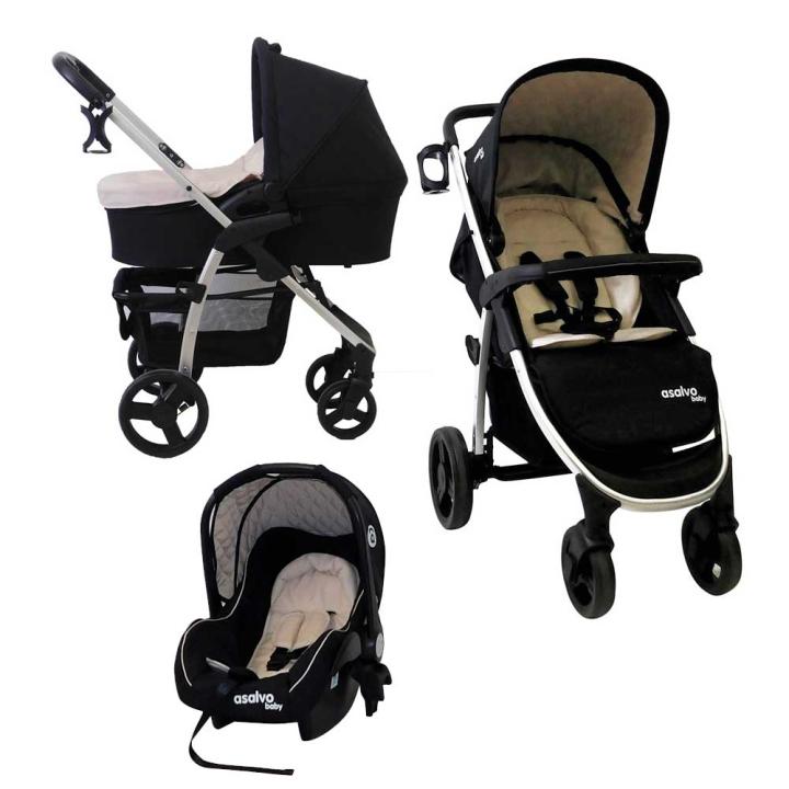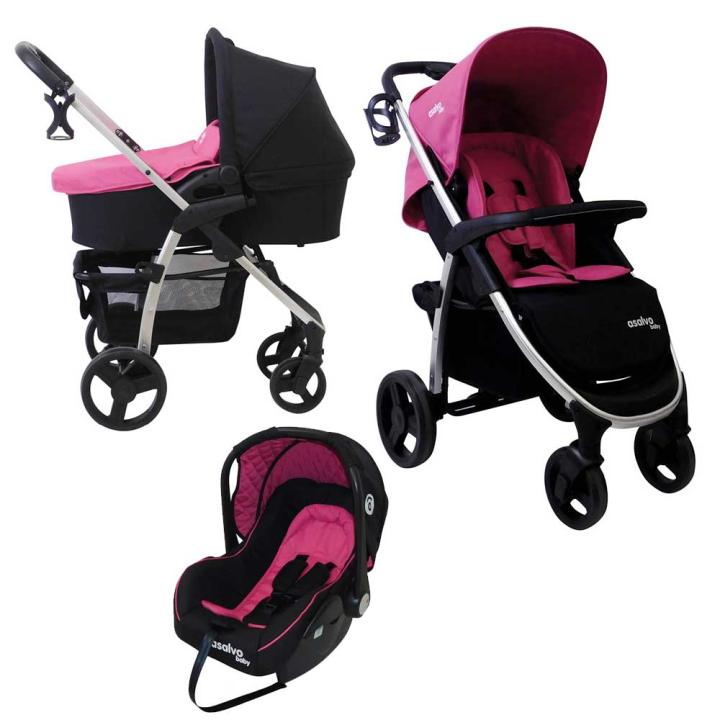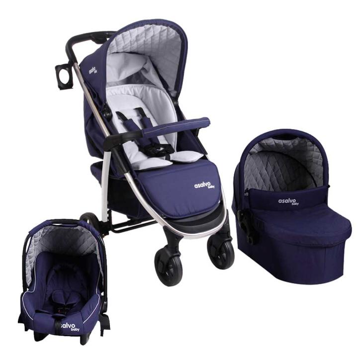 Asalvo Roma II je pokračovaním obľúbeného, cenovo dostupného kombinovaného modelu Roma v v nových, kontrastných farbách a s výrazným prešívaním. Od pôvodného modelu sa líši aj o čosi štíhlejšou konštrukciou - funkčne sú však totožné. Pohodlné, podložkou vybavené a dostatočne priestranné sedadlo možno polohovať do ľahu, a to v chrbtovej i nožičkovej časti. Nedá sa však otáčať. Pre najmenších je k dispozícii skladacia hlboká vanička a autosedačka do 13 kg, ktoré dokážeš na konštrukciu po sňatí sedadla jednoducho nakliknúť. K Trio setu patrí aj zladená prebaľovacia taška transformovateľná na podložku, a aj držiak na nápoje.