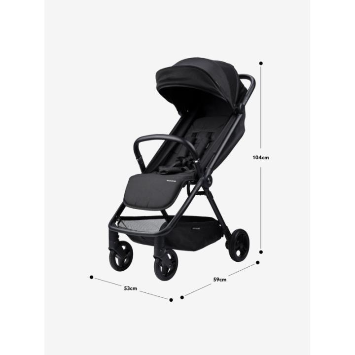 nafukovacie kolesá (otočné s možnosťou fixácie) • takmer úplný rovný ľah (165°) • velmi skladný • veľký úložný priestor • skladanie jednou rukou • možnosť pripojenia autosedačky • zadné kolesá ⌀25 cm • hmotnosť kočíka 10.5 kg • nosnosť sedačky 15 kg • šírka kočíka 59 cm
