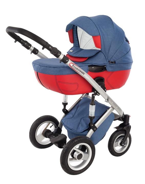 Babyworld Prometheus je štýlový kombinovaný kočík za dostupnú cenu. Je to bratský, totožný model kočíka Hilton vo výraznejších, hravejších farbách a vzoroch. Vyšiel tiež pod značkou MamaKiddies. Robustná konštrukcia kočíka je v zadnej časti dvojnásobne odpružená, čo ti v kombinácii s kolesami s gélom plnenými pneumatikami uľahčí prechod aj náročnejším terénom. Nadstavby sú potiahnuté koženkou v kombinácii s textíliou a kontrastnými detailmi, efektným je tiež výrazný šilt na strieške ako vaničky, tak aj športovej časti. Obe striešky sú vybavené systémom odvetrávania zaisťujúcim cirkuláciu vzduchu v teplých dňoch. Matrac v priestrannej hlbokej vaničke môžeš pre staršie či refluxové bábätko napolohovať. Plne otočná a polohovateľná je tiež športová časť, ku ktorej patrí mäkká podložka. Súčasťou trojkombinácie, v ktorej sa Prometheus obvykle predáva, je tiež výbava: pláštenka, moskytiéra, nánožníky a prebaľovacia taška nositeľná aj ako ruksak.