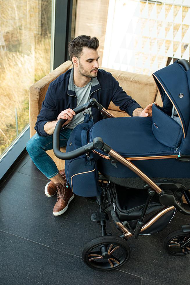 nafukovacie kolesá (otočné s možnosťou fixácie) • vhodný pre vysokých rodičov • takmer úplný rovný ľah (165°) • otočné sedadlo • veľký úložný priestor • skladacia vanička • možnosť pripojenia autosedačky • zadné kolesá ⌀30 cm • hmotnosť kočíka 11 kg • nosnosť sedačky 15 kg • šírka kočíka 60 cm