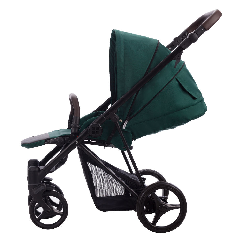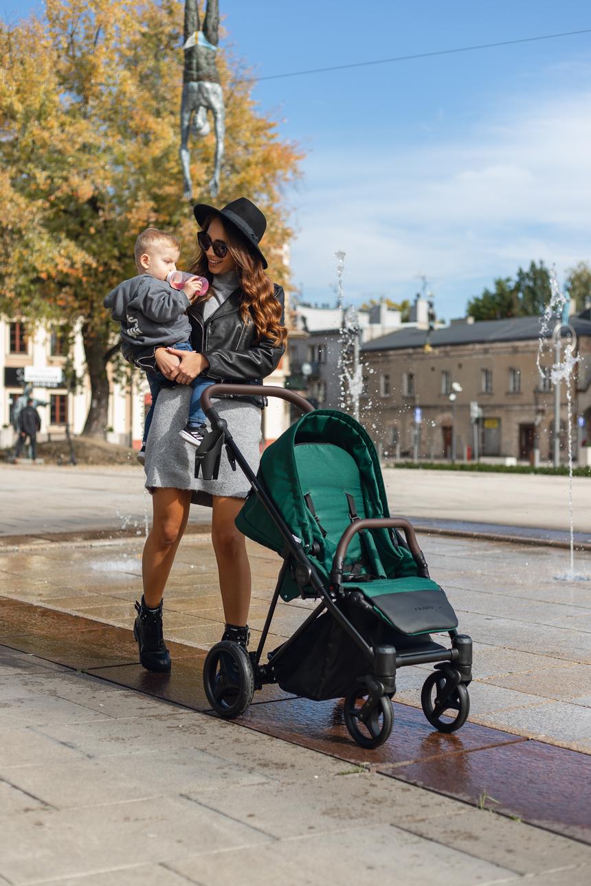 • kĺbová rukoväť potiahnutá eko kožou, výškovo nastaviteľná v rozsahu 78–111 cm vyhovuje aj rôzne vysokým rodičom,