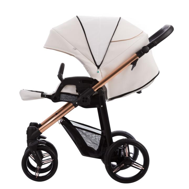 Ľahký športový kočík s otočnou športovou sedačkou. Novodobá ľahká hliniková konštrukcia v zaujímavej medenej farbe s prednými otočnými kolesami zaistí ľahkú manipuláciu s kočíkom. Použitím autosedačky je kočík využiteľný už od narodenia. Kočík je možné zložiť aj so športovou sedačkou.