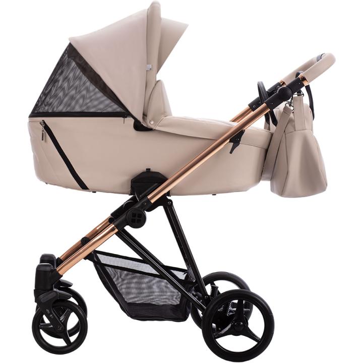 Bebetto Yoddi Premium Class je kombinovaný kočík s poťahmi z eko kože a medeným rámom, ktorý s prehľadom zvládne mestský terén aj výlet do prírody. Kočík sa ľahko ovláda aj jednou rukou, jeho hlboká vanička je aktuálne najľahšia na trhu a napriek tomu priestranná. Športové sedenie je otočné.
