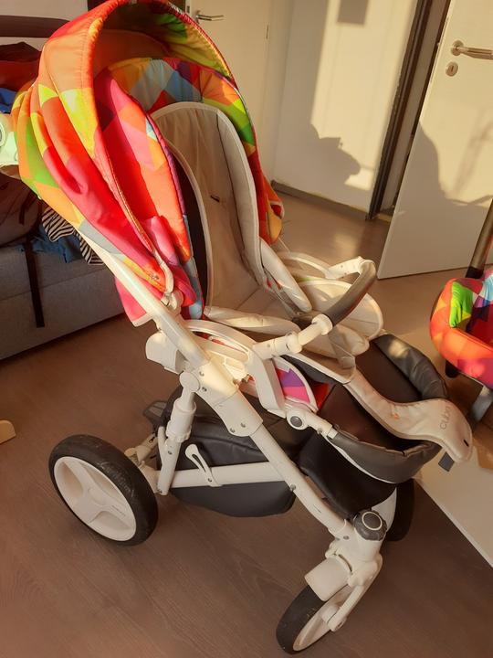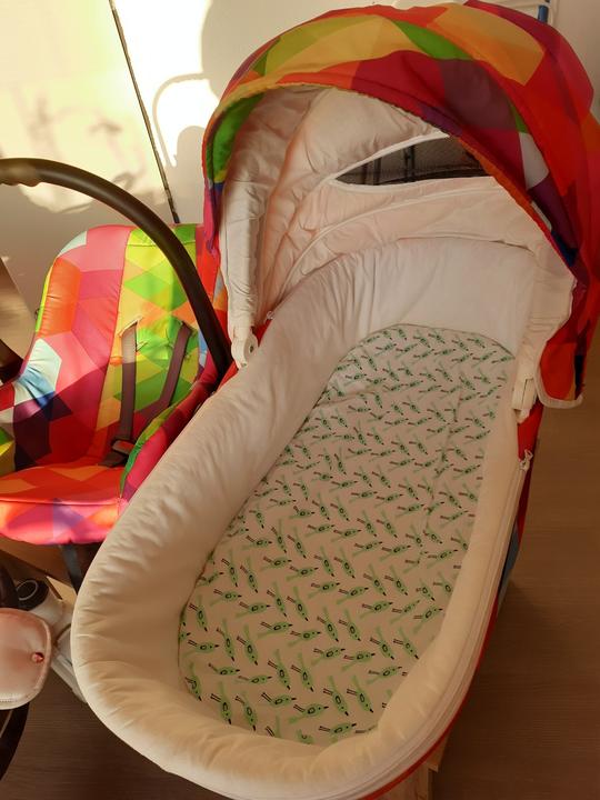 Nádherný kočík veselých farieb, s veľkou a dostatočne širokou vaničkou aj pre dlhé bábätká. Zatiaľ s nami zvládol každý terén 🙂
