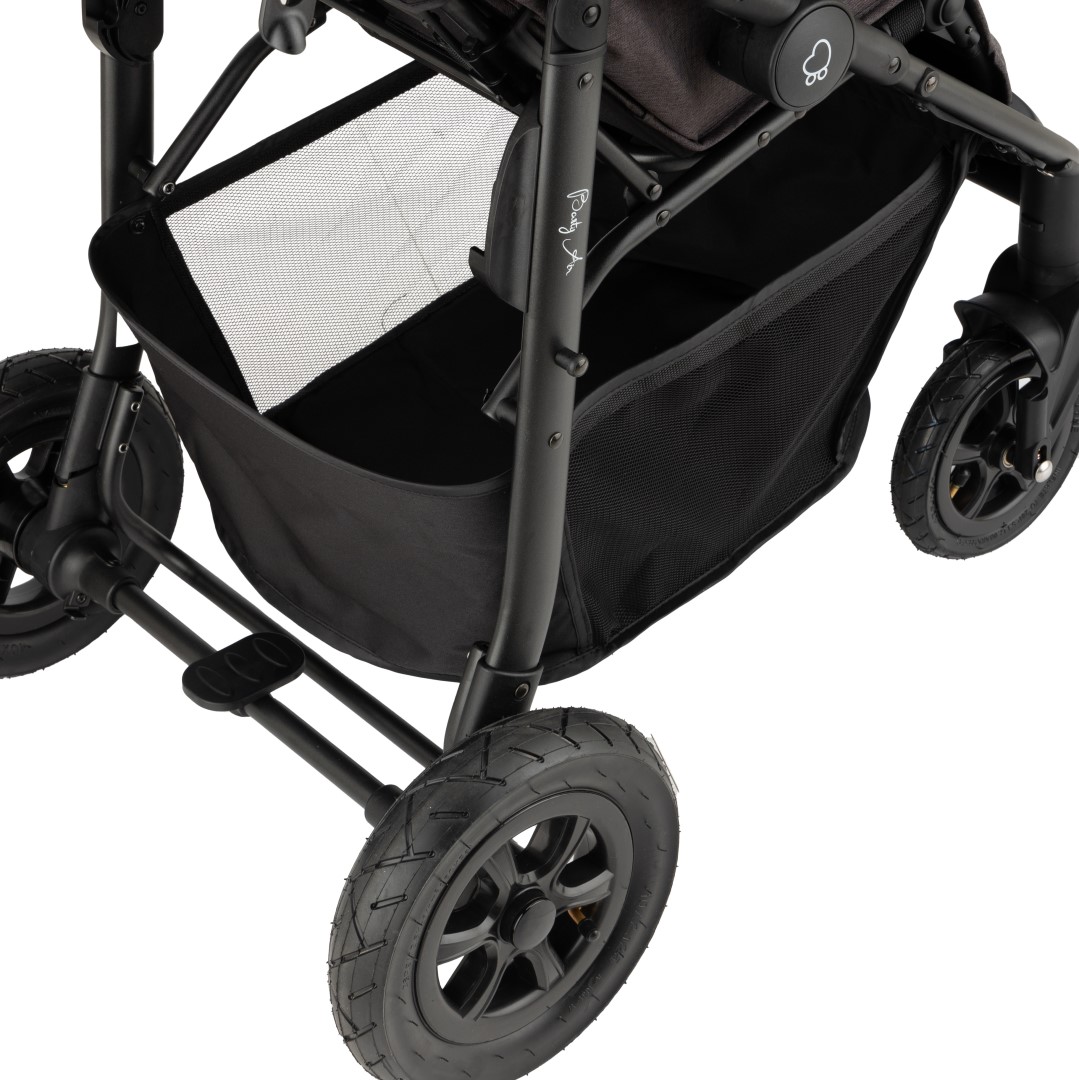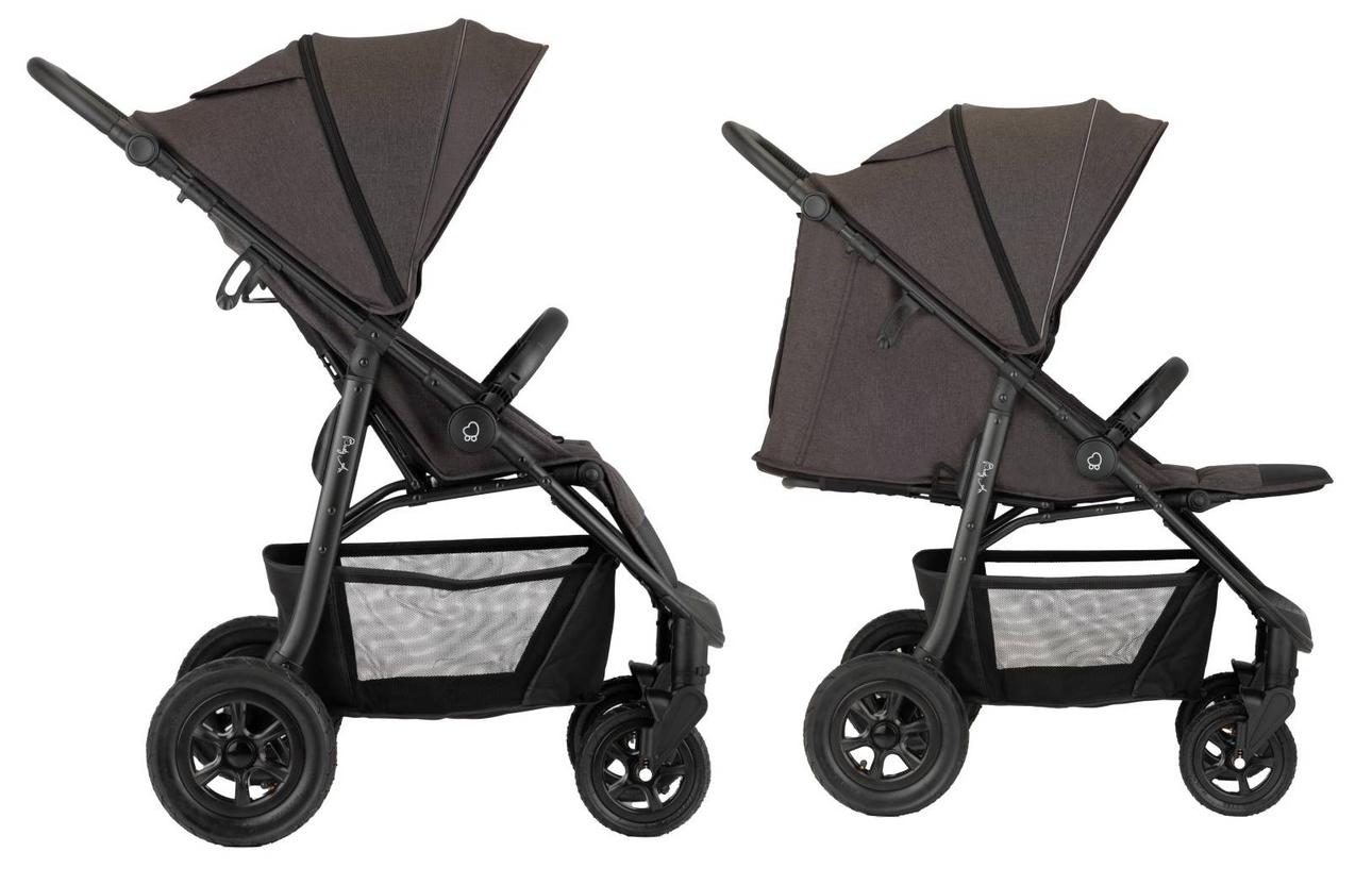 nafukovacie kolesá (otočné s možnosťou fixácie) • vhodný pre vysokých rodičov • takmer úplný rovný ľah (165°) • otočné sedadlo • veľký úložný priestor • skladacia vanička • možnosť pripojenia autosedačky • zadné kolesá ⌀25 cm • hmotnosť kočíka 11.8 kg • nosnosť sedačky 15 kg • šírka kočíka 60 cm