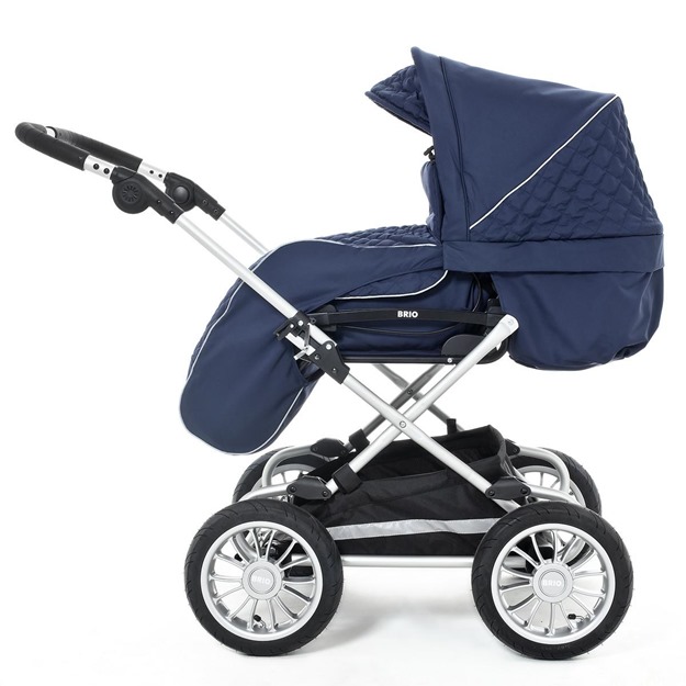 Brio Happy je vysoko variabilný kombinovaný kočík, u ktorého si pri kúpe vyberáš z až troch druhov podvozku. Základnými sú klasické rámy s veľkými neotočnými kolesami do každého terénu (buď s otočnou, alebo s teleskopickou rukoväťou), mestskí rodičia si však môžu vybrať aj konštrukciu s prednými menšími, obratnejšími otočnými kolesami. Na výber je aj typ kolies - okrem nafukovacích do každého terénu (2 druhy výpletu) sú dostupné aj odľahčené bezúdržbové penové kolesá.