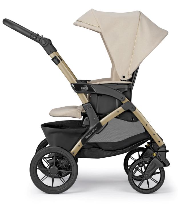 Kočík Cam Dinamico Up je určený pre nízkych a stredne vysokých rodičov, ktorí sa pohybujú po meste. Nižšia váha a dobrá manipulovateľnosť umožňujú ovládanie jednou rukou. Obojsmerné športové sedenie možno napolohovať do takmer úplne rovného ľahu a ponúka výber z dvoch vaničiek Rover alebo Smart.