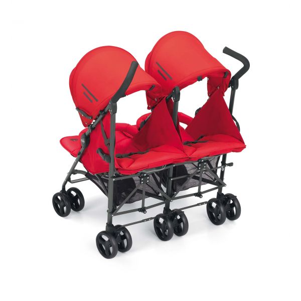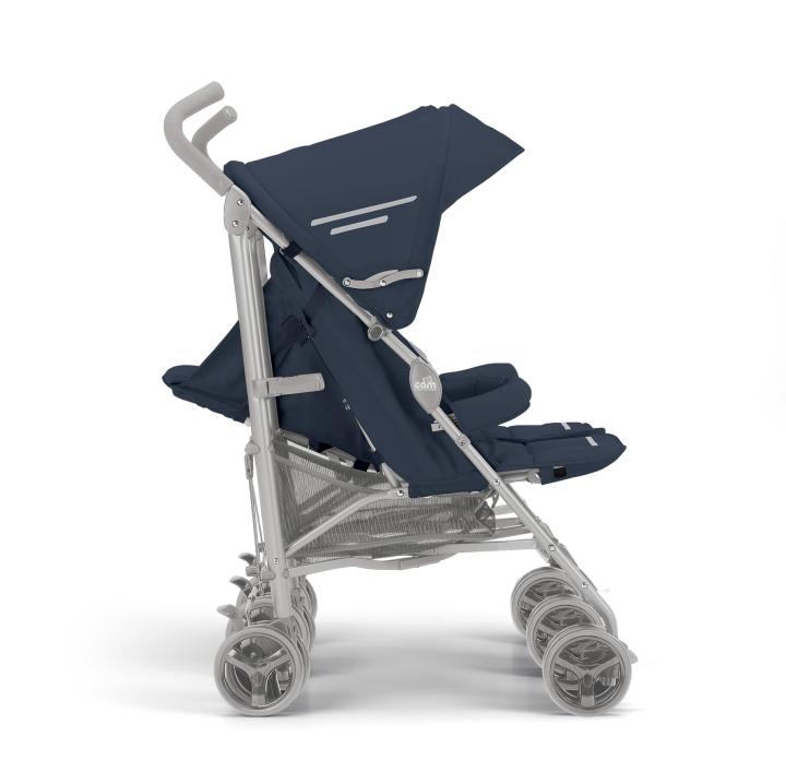 Cam Flip Twin je dvojverzia obľúbeného golfového kočíka Cam Flip. Je to ľahký golfový kočík pre dve deti rovnakého či blízkeho veku so sedením vedľa seba. Určený je na menej náročné mestské povrchy. Sedadlá môžeš individuálne polohovať do ľahu vhodného aj pre nesediace deti. Súčasťou každého je aj mäkká chrbtová vložka.