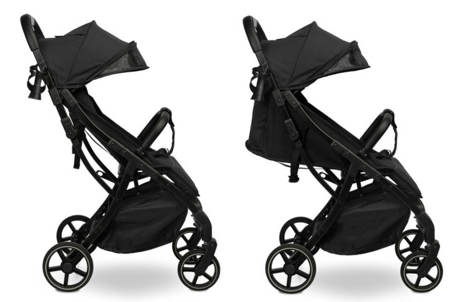 penové kolesá (otočné) • takmer úplný rovný ľah (165°) • velmi ľahký • velmi skladný • skladanie jednou rukou • zadné kolesá ⌀19.5 cm • hmotnosť kočíka 8.3 kg • nosnosť sedačky 22 kg • šírka kočíka 54 cm