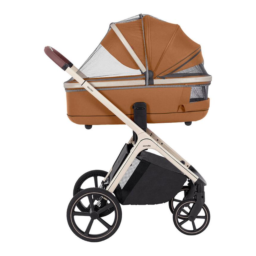 Carrello Vector je cenovo dostupný dizajnový kočík pre rodičov, ktorí sa pohybujú prevažne v mestskom prostredí. Vďaka rôznym výškam položenia nadstávb a nastaviteľnej teleskopickej rukoväti do výšky 105 cm je vhodný pre rôzne vysokých rodičov, ktorí zároveň ocenia aj jednoduchú manipuláciu umožňujúcu ovládanie jednou rukou. Zaujme tiež jednoduchým zložením a po zložení zaberie málo miesta, čo šetrí miesto pri uskladnení. Športové sedenie je obojsmerné a je možné ho napolohovať do takmer úplne rovného ľahu.