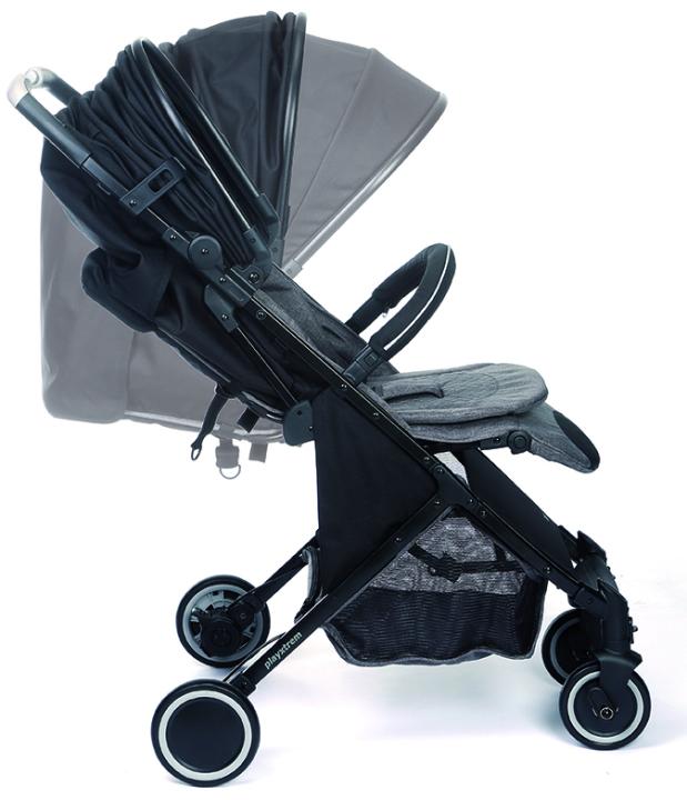 kolesá otočné s možnosťou fixácie • takmer úplný rovný ľah (165°) • velmi ľahký • veľký úložný priestor • hmotnosť kočíka 8.2 kg • nosnosť sedačky 15 kg • šírka kočíka 48 cm