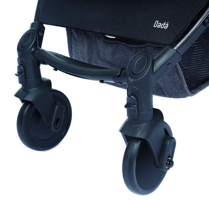 Casualplay Playxtrem Dadá je vynoveným moderným pokračovaním modelu Dadá. Playxtrem Dadá je golfový kočík veľmi nízkej váhy s ultra kompaktným skladaním jedným pohybom. Je preto výborný na cestovanie ako autom či MHD, tak aj lietadlom. Menšie kolieska sú vhodné do mesta, pre hladšiu jazdu sú individuálne odpružené. Neotočné sedadlo je extra polstrované, s pridanou mäkkou vložkou. Možno ho polohovať až do ľahu vrátane opierky nôh. Vhodné je tak v doplnkovej úlohe aj pre bábätká prakticky od narodenia. Vďaka vysokej nosnosti však zvládne aj väčšie dieťa.