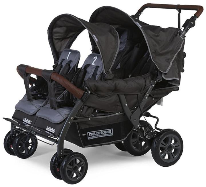 Childhome Quadruple je štvormiestny kočík určený pre zariadenia starostlivosti o deti, ako sú škôlky, jasle, ale aj pre rodičov s viacpočetnými deťmi. Poskytuje bezpečné, stabilné a zároveň pohodlné riešenie na prepravu až štyroch detí naraz. Odporúča sa ovládanie dvomi dospelými osobami, najmä pri obrubníkoch, stúpaniach a klesaniach.