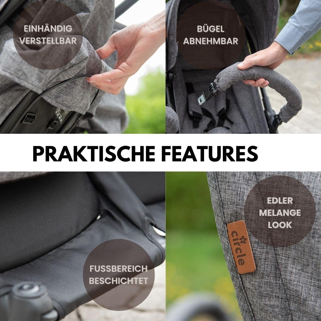 Circle by ABC Design Twin je cenovo dostupný, ľahko ovládateľný súrodenecký alebo dvojčatový kočík so sedačkami umiestnenými vedľa seba, navrhnutý na každodenné používanie na vidieku. Vďaka samostatne polohovateľným sedačkám až do úplného ľahu a kompaktným rozmerom po zložení je vhodný pre rodičov, ktorí hľadajú praktické riešenie pre dve deti.