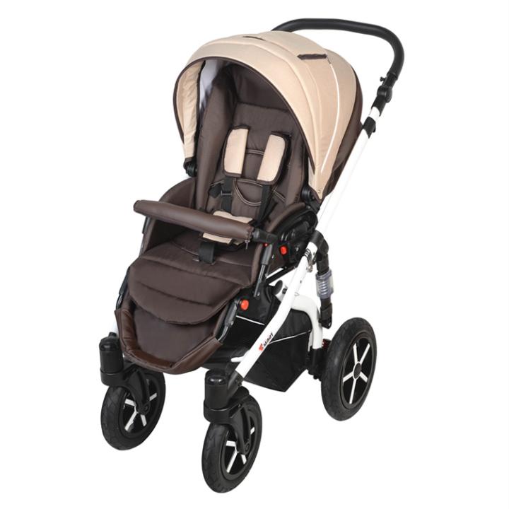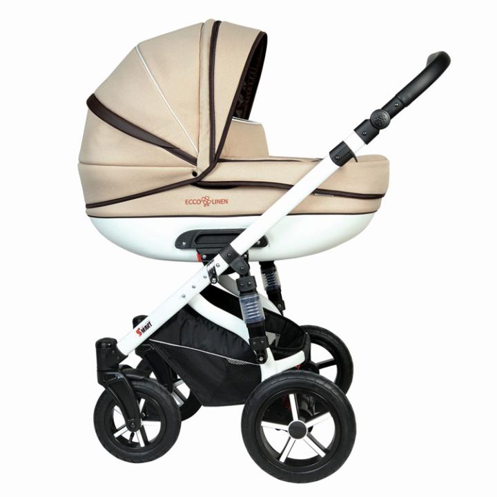 Dorjan Prestige Ecco Linen je kombinovaný kočík vyššej rady značky s novou modernejšou oválnou plastovou vaničkou a poťahmi nadstávb imitujúcich výzor prírodného ľanu. Robustná konštrukcia je vzadu dvojnásobne odpružená pre čo najhladšiu jazdu aj v zhoršených podmienkach. Výhodou je aj priestranný nákupný košík. Priestrannú hlbokú vaničku môžeš otáčať a pre staršie bábätko aj napolohovať. Otočné a plne polohovateľné je aj športové sedadlo. Ku kočíku patrí aj bohatá výbava: pláštenka, moskytiéra, nánožníky na obe nadstavby a prebaľovacia taška. Voliteľnou autosedačkou vytvoríš z kočíka trojkombináciu s cestovným systémom.