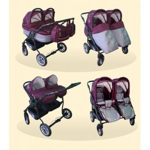 Kombinovať môžeš všetky nadstavby, a to dve vaničky, dve sedačky, dve autosedačky alebo jedno s druhým. Výhodou vaničiek sú okrem polohovania aj nánožníky s rozopínaním v strede, vďaka ktorým dokážeš vybrať detičky bez toho, aby si cih musela celé sňať. Športové časti môžeš individuálne polohovať až do ľahu, a to v oboch smeroch. Jednu alebo obe autosedačky naklikneš na konštrukciu pomocou dodávaných adaptérov.