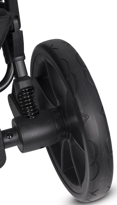 - väčšie nenafukovacie kolesá s gumovým behúňom a penovou výplňou zvládnu okrem mestského aj vidiecky terén,