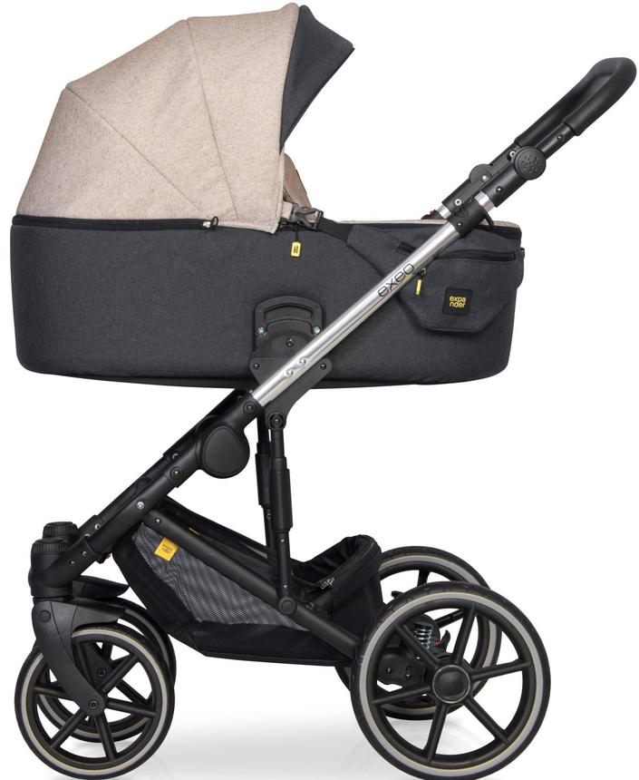 Expander Exeo je kombinovaný kočík vhodný od narodenia do 3–4 rokov. Ponúka priestrannú korbičku, otočné športové sedenie, ľahký hliníkový rám a bezúdržbové gélové kolesá. Skvele sa hodí do mesta aj do terénu vďaka nastaviteľnému odpruženiu a otočným predným kolesám. Bohatá výbava a moderný dizajn v jemných farbách poteší každého rodiča.
