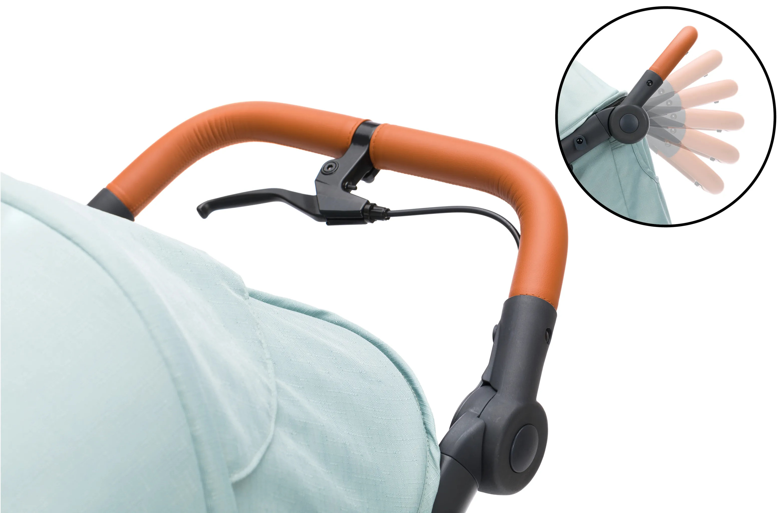 - výškovo nastaviteľná kĺbová rukoväť z eko kože pre prispôsobenie rôzne vysokým rodičom,