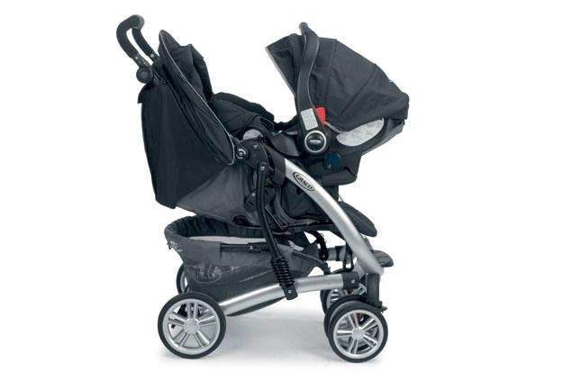 Chrbtovú opierku neotočného sedadla možno polohovať až do ľahu. Súčasťou sedadla je vymedzovací vankúšik. Ku kočíku nie je možné pripojiť hlbokú vaničku, dá sa však nahradiť vložnou taškou Cosycot s ložnou plochou 58x24 cm. Tá je už v základnej výbave kočíka. Pri vkladaní vložnej tašky je potrebné úplne zdvihnúť opierku nôh. Okrem toho možno bábätko voziť aj v autosedačke Graco nakliknuteľnej na detský pultík bez potreby adaptérov. Staršie modely Quattro Tour Sport spoznáš podľa mohutnejšej striešky s rozzipsovateľným plastovým náhľadovým okienkom.