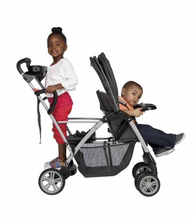 Graco RoomFor2 je cenovo dostupný športový kočík s integrovanou lavičkou a prídavným stupienkom pre staršieho súrodenca. Ako názov napovedá, v kočíku je miesto pre dve deti. Sedadlo vpredu je určené pre mladšieho súrodenca. Môžeš nakloniť do ľahu dostatočného aj pre nesediace bábätko. Pomocou popruhov systému Classic Connect k pultu dokážeš pripojiť autosedačku Graco. U novších modelov sa pult dá odňať, čo odhalí tyčové madlo, na ktoré možno autosedačku pripojiť novším naklikávacím systémom Click Connect. Polstrované lavičkové sedenie či zadný stupienok na státie využiješ pre staršie dieťa, ktoré už chodí, no občas sa potrebuje aj zviezť. Vo výbave kočíka je tiež praktický pult pre rodiča s miestami pre nápoje.