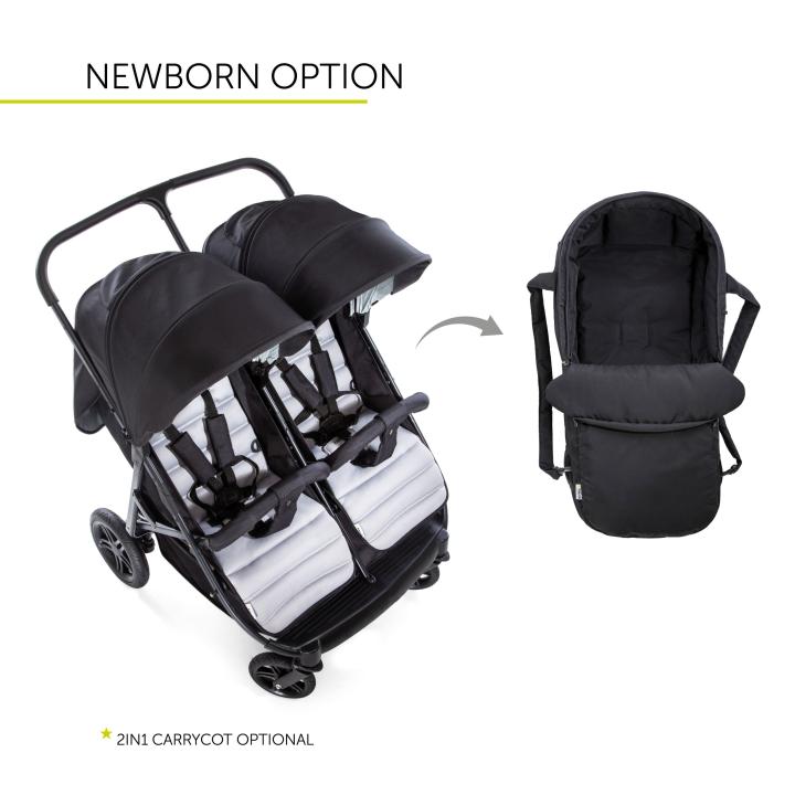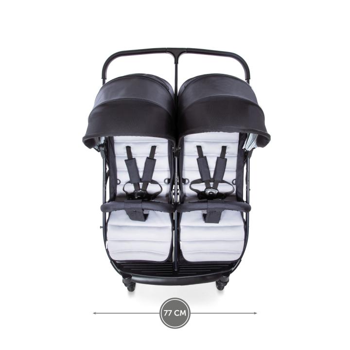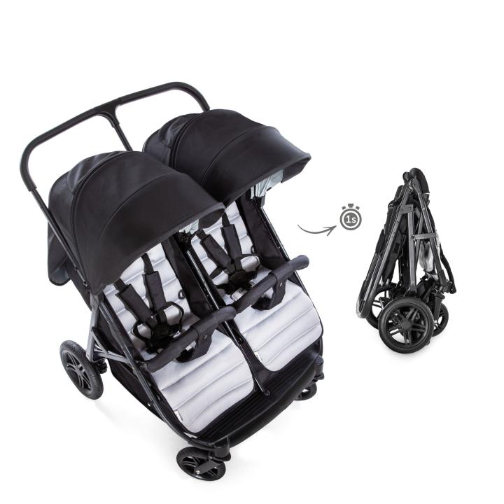 Hauck Rapid 3R Duo je variáciou Rapid 3R vo verzii pre dvojičky či vekovo blízkych súrodencov. Je preto vybavený dvoma plnohodnotnými sedadlami umiestnenými vedľa seba, takže deti majú rovnocenný výhľad i priestor. Obe sedadlá môžeš plne polohovať. Zároveň môžeš ku kočíku voliteľne pripojiť vložné vaničky či jednu či dve autosedačky iPro Baby či Comfort Fix (adaptéry k nim sú už súčasťou základného balenia). Tak ako jednomiestny model, aj Rapid 3R Duo zložíš rýchlo a jednoducho, potiahnutím popruhov integrovaných v sedákoch. Po zložení je relatívne kompaktný a dokonca samostatne stojí pre jednoduchšie uskladnenie.