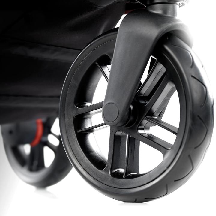 kolesá otočné s možnosťou fixácie • vhodný pre vysokých rodičov • úplný rovný ľah (180°) • otočné sedadlo • veľká vanička • priestranné sedadlo • velmi skladný • možnosť pripojenia autosedačky • zadné kolesá ⌀28.5 cm • hmotnosť kočíka 15.6 kg • nosnosť sedačky 15 kg • šírka kočíka 61 cm