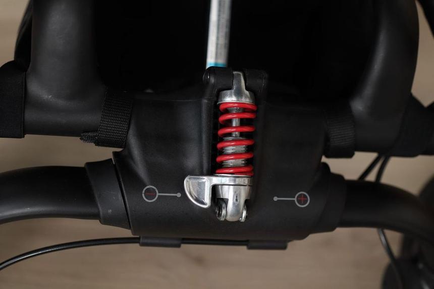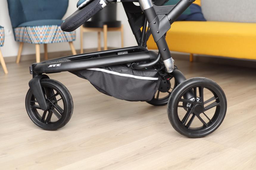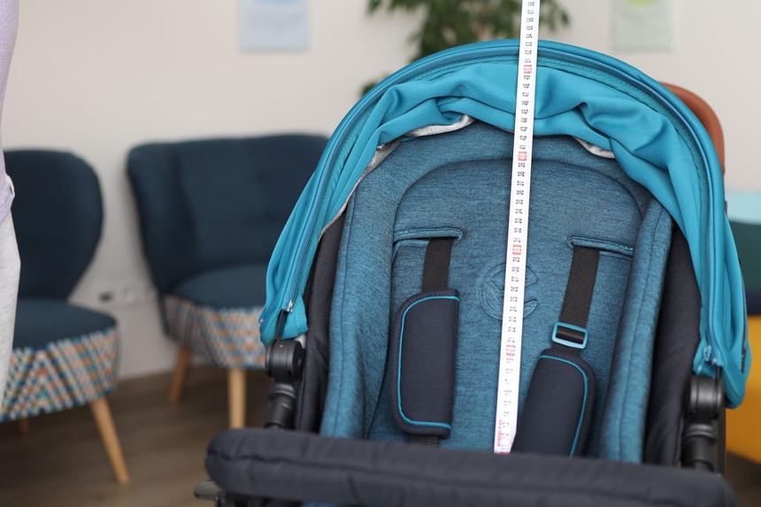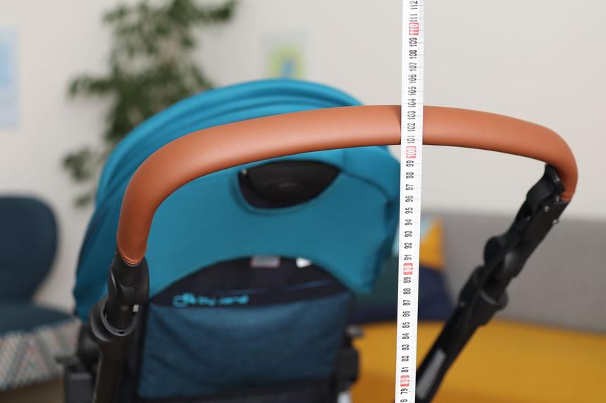 - otočná rukoväť nastaviteľná vo výške od 85 do 103 cm, vďaka čomu vyhovuje stredne vysokým rodičom (od 150 do 170 cm),