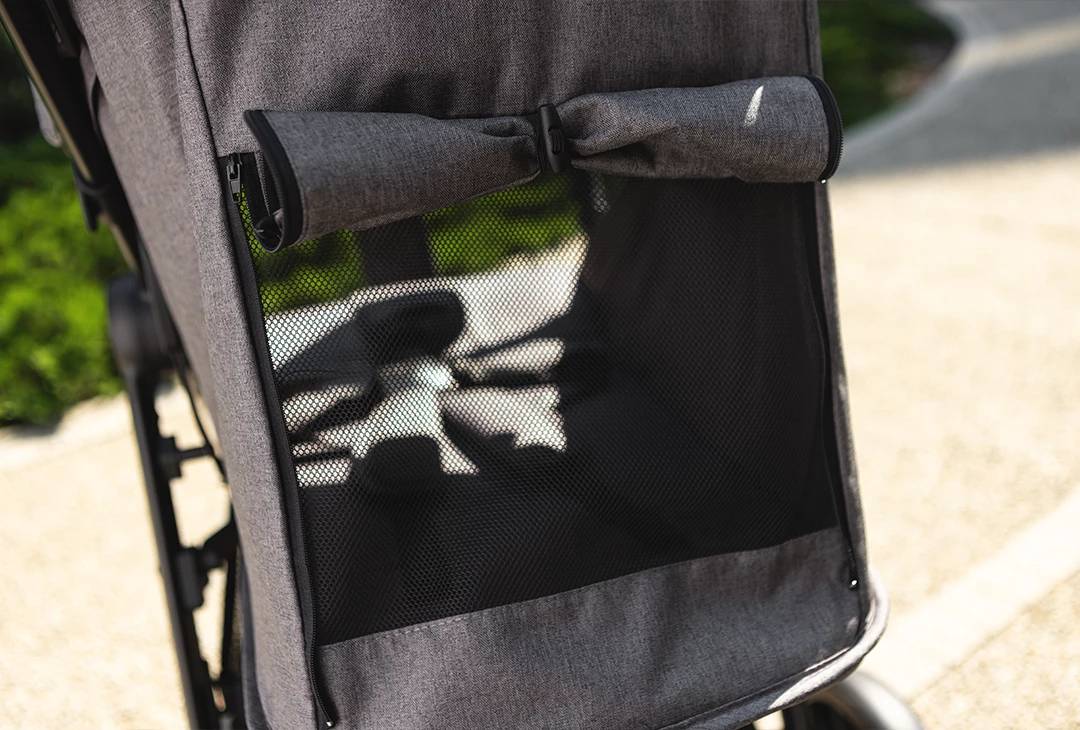 - Ku kočíku v základnej výbave patria pláštenka do dažďa, moskytiéra, nánožník a prepravná taška na zložený kočík.