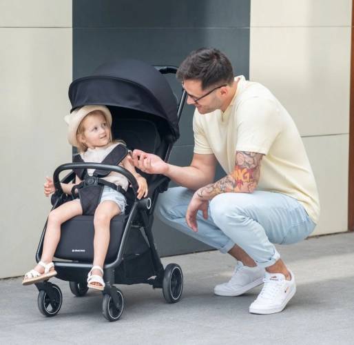 penové kolesá (otočné s možnosťou fixácie) • takmer úplný rovný ľah (165°) • priestranné sedadlo • velmi ľahký • velmi skladný • skladanie jednou rukou • zadné kolesá ⌀15.5 cm • hmotnosť kočíka 7.9 kg • nosnosť sedačky 22 kg • šírka kočíka 51 cm