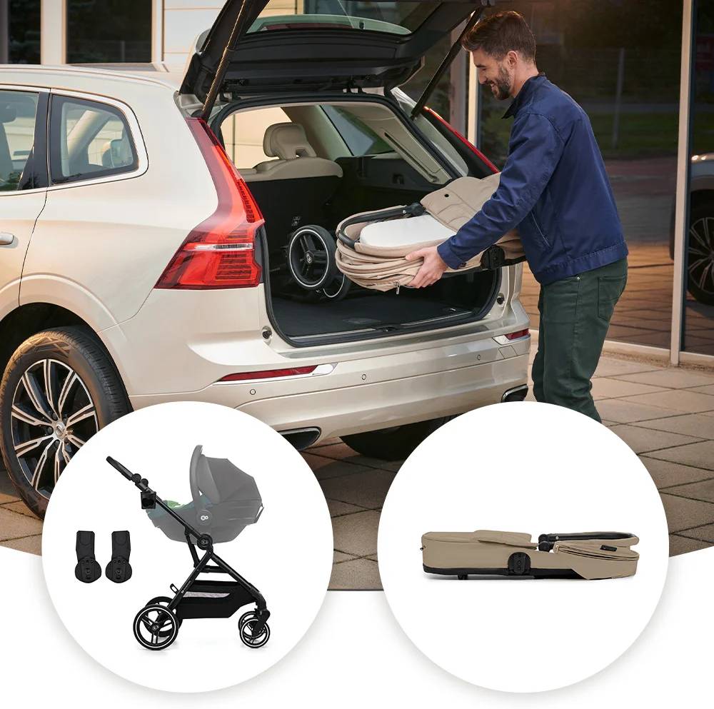- Súčasťou základnej výbavy kočíka sú pláštenka, moskytiéra, nánožník, držiak na nápoj, taška na kočík a adaptéry na autosedačku.