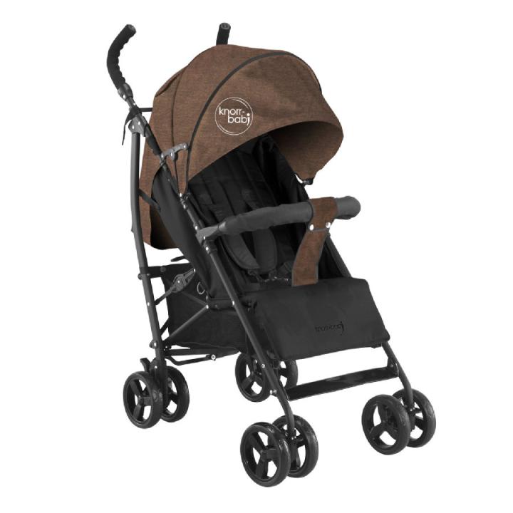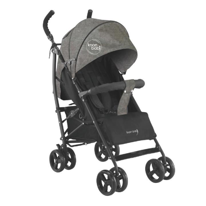 Knorr Baby Styler je jednoduchý, štýlový golfový kočík vhodný na nenáročné vychádzky mestom či na výlety. Pre chýbajúce odpruženie ho využiješ na hadších chodníkoch či napríklad v nákupných centrách. Sedadlo sa dá bočnými páčkami polohovať do pomerne hlbokého, nie však úplného ľahu. Je určené pre dieťa od minimálne šiestich mesiacov, ktorému pre vyššie pohodlie či hlbšiu sedaciu plochu môžeš zdvihnúť aj opierku nôh. Súčasťou sedadla je odklopiteľné detské madlo, všetku výbavu naviac je však nutné dokúpiť osobitne. Styler vyšiel v dvoch rôznych prevedeniach - Happy Colour s výraznými farebnými akcentami, a Melange so strieškou v trendových tlmených melange farbách.