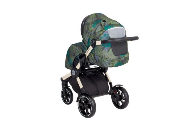 Nadstavby v moderných farbách a vzoroch na konšrukciu možno jednoducho nakliknúť v oboch smeroch. Set pozostáva z oválnej hlbokej vaničky s polohovaním a dvoma vrstvami matracov (vrchný kokosový), do ľahu polohovateľnej športovej sedačky a príslušenstva: pláštenky, moskytiéry, nánožníkov, podložky do sedadla. držiaka na pohár a prebaľovacej tašky. Voliteľne si dvojkombináciu môžeš doplniť zladenou autosedačkou.