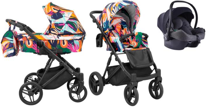 vhodný pre vysokých rodičov • takmer úplný rovný ľah (165°) • otočné sedadlo • veľká vanička • veľký úložný priestor • možnosť pripojenia autosedačky • zadné kolesá ⌀27 cm • hmotnosť kočíka 15 kg • nosnosť sedačky 15 kg • šírka kočíka 60 cm