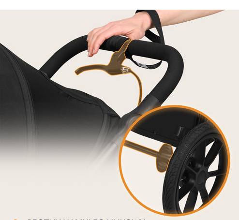 - otočná ručná brzda umožňuje ľahké pribrzďovanie z kopca a celkovo prispieva k bezpečnej jazde,