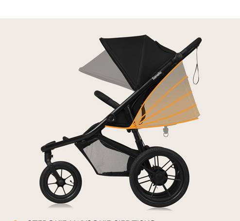 - veľké nafukovacie kolesá spolu s odpružením všetkých troch kolies zaručujú dobrú ovládateľnosť pri behu a športe, ale aj na nerovnejšom povrchu,
