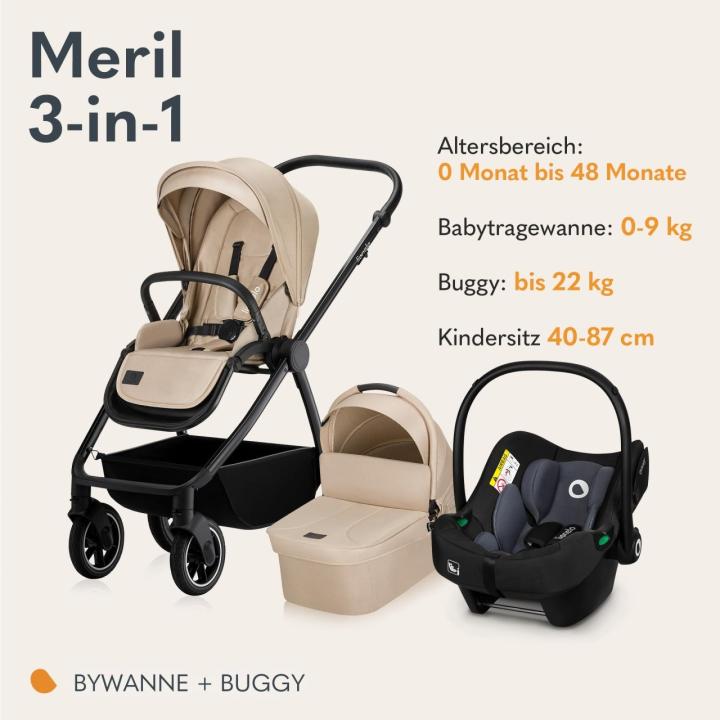 Lionelo Meril sa zakupuje ako dvojkombinácia alebo trojkombinácia s možnosťou nasadenia autosedačky – tzv. vajíčka, na konštrukciu kočíka.