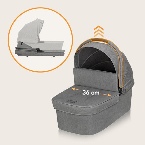 • väčšia vanička je so svojimi rozmermi 79 x 36 cm vhodná aj pre jarné bábätko, ktoré má dostatok miesta v nasledujúcom zimnom období aj spolu s fusakom,