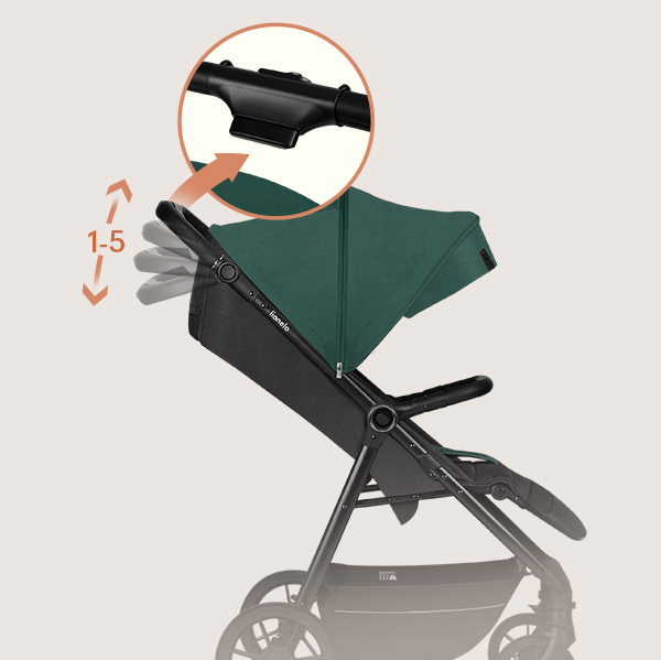 - výškovo nastaviteľná kĺbová rukoväť v 5 úrovniach potiahnutá eko kožou bude vyhovovať aj rodičom rôznej výšky, maximálna výška rukoväte cca 104 cm,