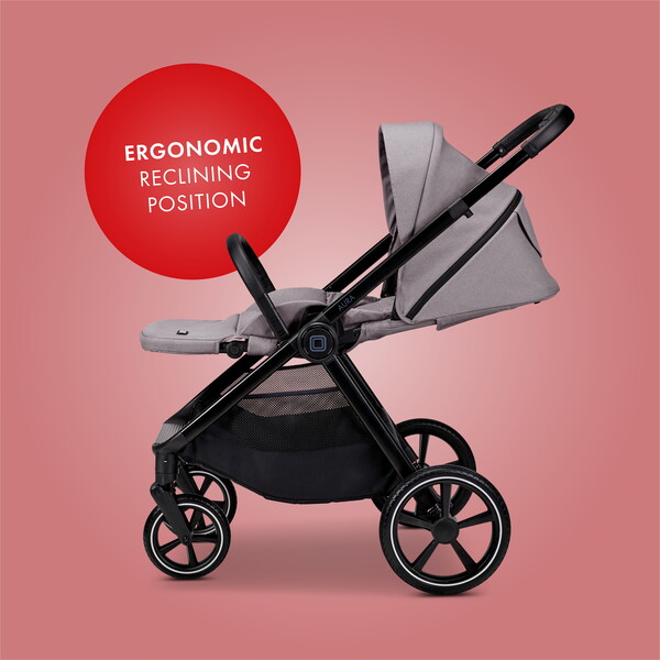 - výškovo nastaviteľná teleskopická rukoväť (98–107 cm) s poťahom z eko-kože bude vyhovovať aj rôzne vysokým rodičom,