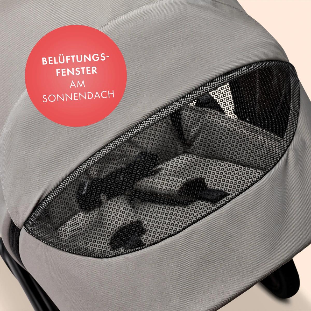 • ventilačné nehlučne uzatvárateľné náhľadové okienko v strieške na cirkuláciu vzduchu a kontrolu dieťaťa,