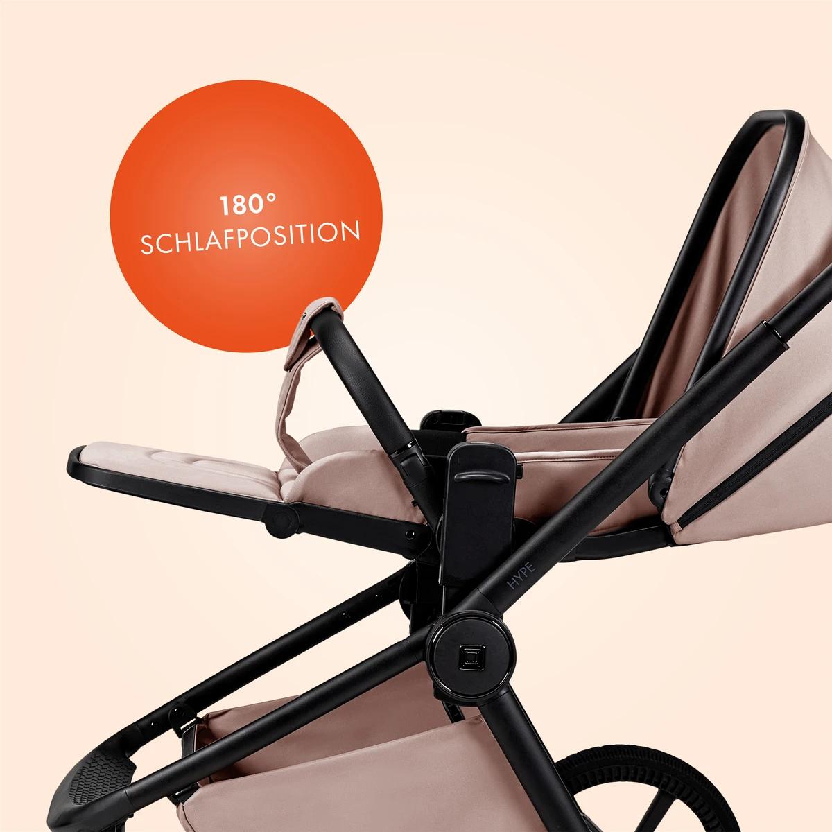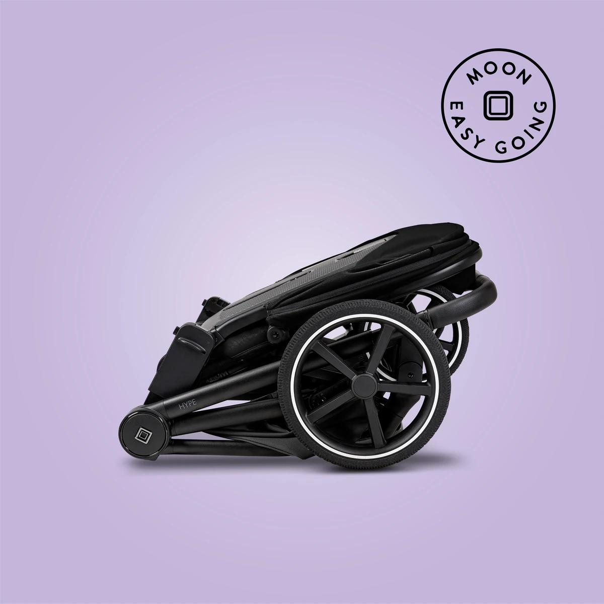 Moon Hype je športiak navrhnutý na každodenný pohyb v meste aj na dedine a časté skladanie kočíka. Zaujme kompaktným jednoručným skladaním, otočným sedadlom polohovateľným do úplného ľahu, veľkými gélovými kolesami a adaptabilitou podľa výšky dieťaťa aj rodiča.