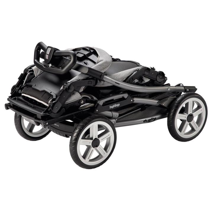 Peg-Pérego Duette s prívlastkom Pop Up je verziou tandemu Duette SW s novými modernými skladateľnými sedadlami Pop Up s klasickými pásmi. Sedadlá môžeš polohovať až do ľahu vrátane opierky nôh. Kratšia strieška s úchytom na hračku sa dá predĺžiť ďalším dielom, ale tiež použiť vo forme štítu proti slnku. Dlhú konštrukciu so zadným odpružením dokážeš poskladať až po odňatí nadstávb a zmestí sa len do väčších kufrov áut. Veľmi priestranný nákupný košík je ťažšie prístupný.