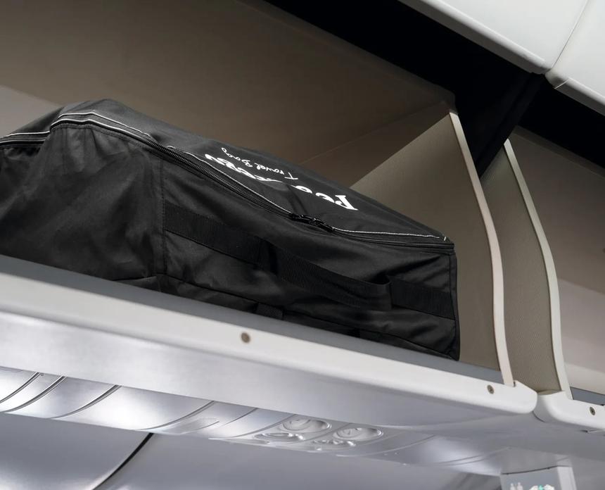 • po zložení má rozmery príručnej batožiny do lietadla – 44,5 × 25 × 50 cm (overte si u svojej leteckej spoločnosti),